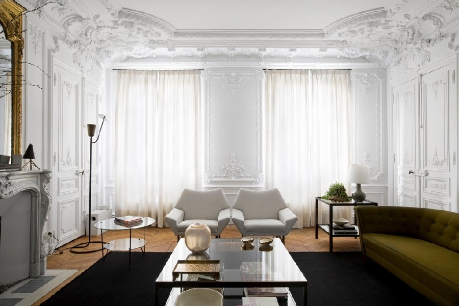 1.Walls can be as ornate as ever if they are painted the same color, no gold trims, please.