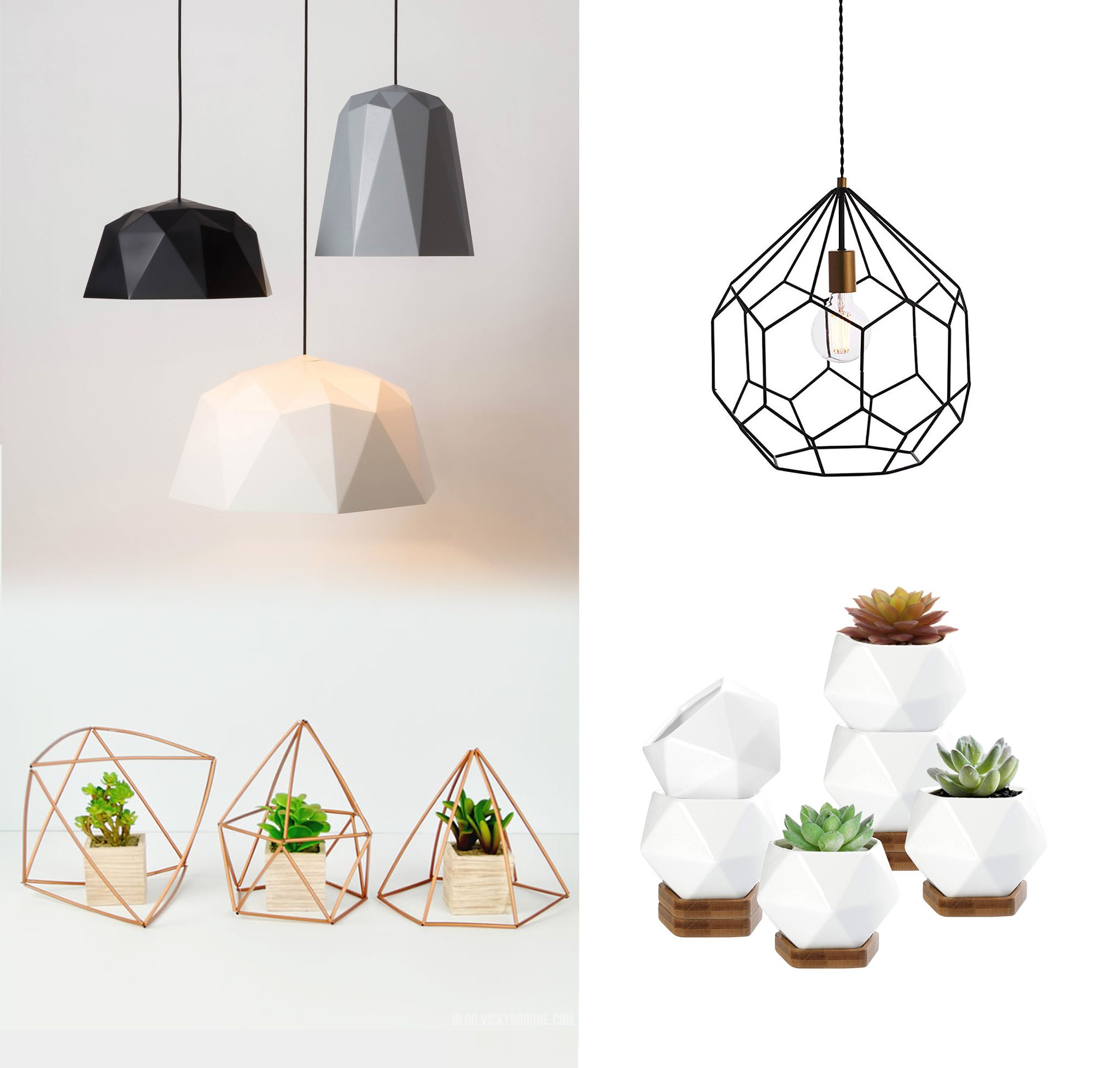 I consider this style one of the easiest to build about. Even though the actual items can sometimes be very pricey, or hard to transport if they are made of real concrete, there are so many of them, you'll always get a chance to find something that fits your budget. "Geometric" and "diamond" are your main keywords.