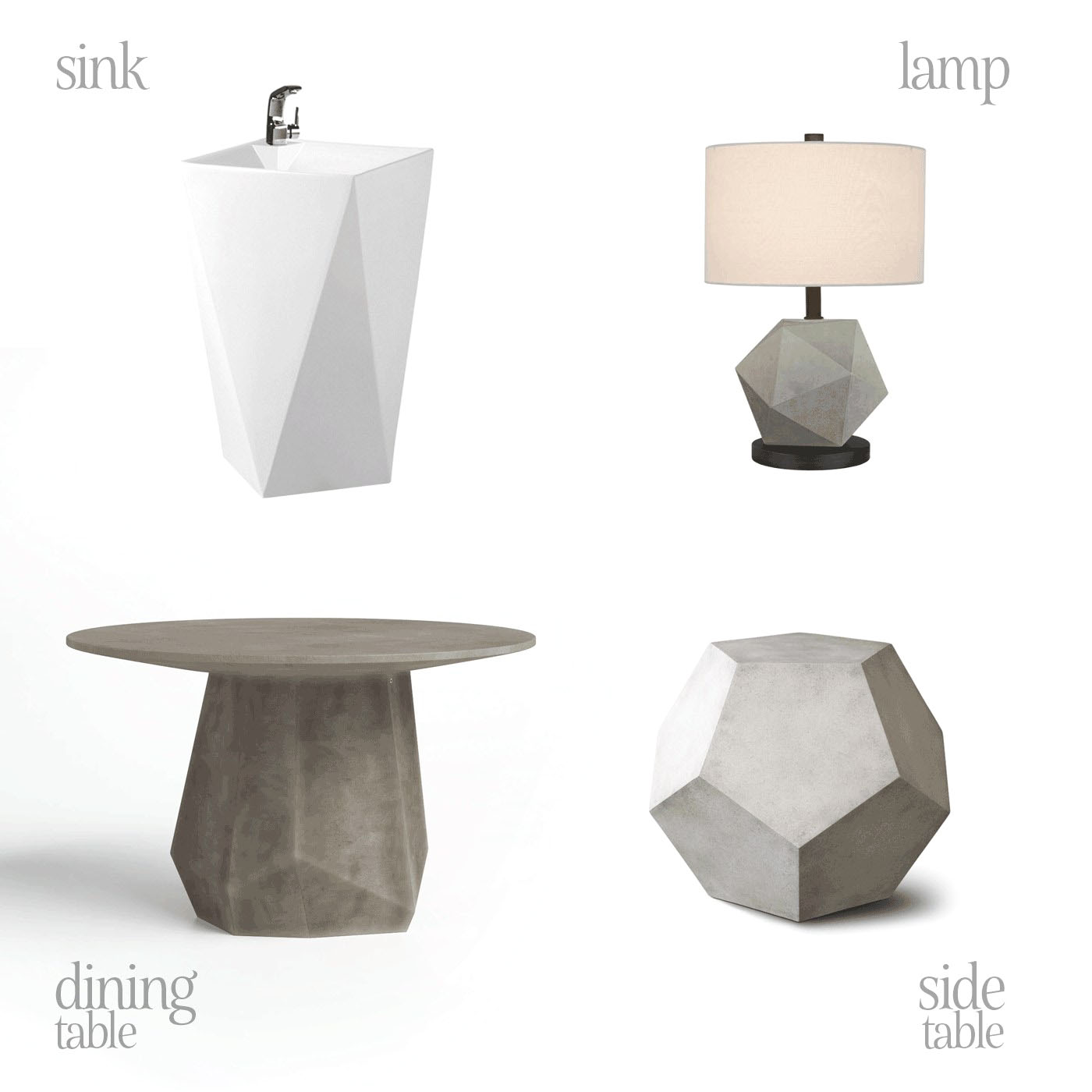 Some of the objects of this style are more symmetrical and remind of cut precious stones, so they naturally find their place in minimal classic interiors which strive for a luxury feel. Asymmetrical ones mainly belong to loft and industrial designs, here you can expect a lot of items made of concrete. And finally, there are also origami inspired items, but this is a whole different story worth of a separate post.