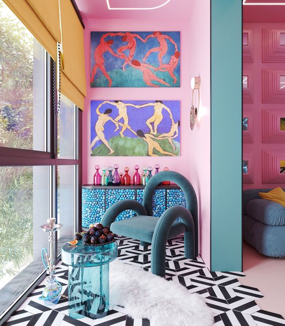 Today I'd like to introduce to you a very interesting design style referred to as Memphis Design. You can see right from the photos, it's unlike anything else. I am not sure I'll ever create a place like this, to me personally it's way too much color. But I'd like to summarize the design rules I'd use if I were to Memphis design a space.