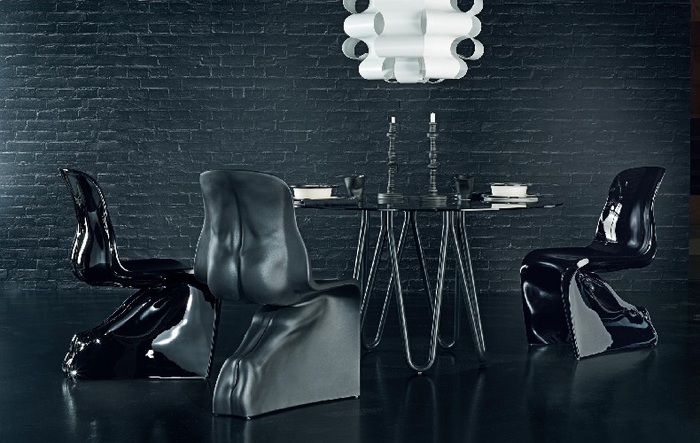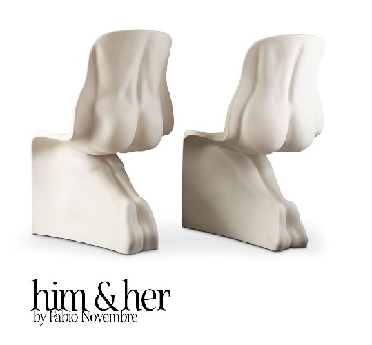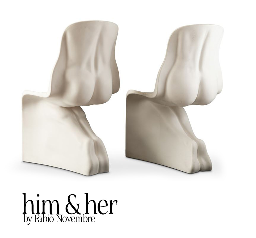 The shape of Panton chair is very anthropomorphic and in 2008 it has inspired another designer, Fabio Novembre, to create Him and Her chairs which take the shape of the classic Panton chair quite literally, reimagining it as a naked male or female body. Such a sexy Italian homage to the restrained Nordic minimalism! This is my favorite version and some day I'd hope to create an ironic Greek and gay inspired interior with it.