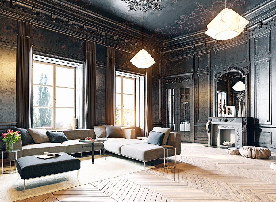 1.Walls can be as ornate as ever if they are painted the same color, no gold trims, please.