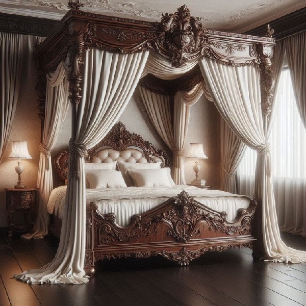 So the first canopy beds were mainly used by royalty, elevated platforms with rods and layers of luxurious fabric hanging from them. Aside of privacy, those would also protect from insects such as spiders which must have been plentiful in buildings with tall ceilings, and also dust, water and even debris falling from poorly insulated roofs. While adding more to the grandeur of royalty, they still were very, very functional.