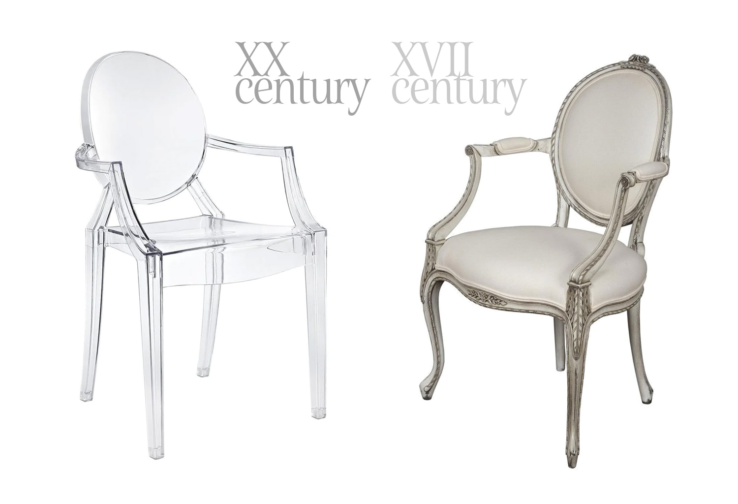 Today I'd like to talk about transparent acrylic furniture, particularly about another Philippe Starck creation called Louis Ghost chair. Here we see the shape of a classic Louis XV chair, the essence of it, its soul, or should I say its "ghost"?