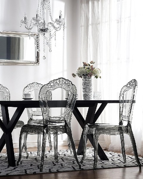 In one of my previous posts I've already marveled at Louis Ghost chairs which were the first birds of this new age style, but there are more on the market, with much more ornate shapes. Here though we have a fully transparent table which is even more impressive.